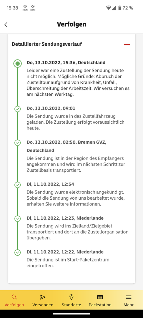 @inzaghi75 Ich hatte sowas mal bei UPS ...dann kam es wurde angenommen von Herrn XY in einem Ort in der Nähe...hab mich an den support gewendet und die konnten das dann klären. Mein Paket ist auf die falsche Palette geschoben worden und dann mit einer Großbestellung zu einer Firma gegangen und wurde dort mit angenommen. UPS konnte das schnell nachverfolgen und ich bekam mein Paket dann ein paar Tage später Ich habganz schnön geschwitzt, da es vom Wert ähnllich dem Pixel war.....