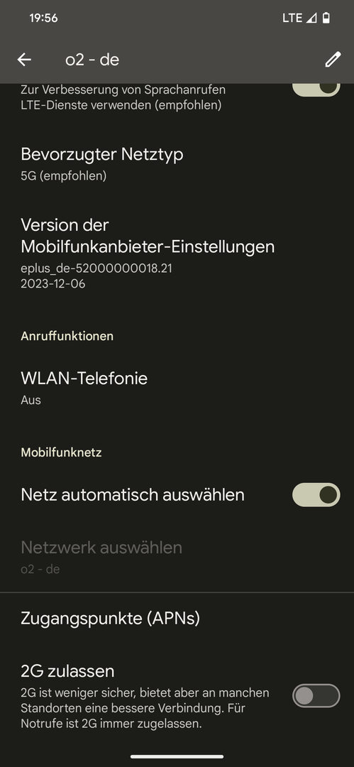 du musst natürlich am Standort LTE Empfang haben.Rafal schrieb:Habe gelesen, dass man 2G deaktivieren kann, leider im O2 Netz nicht möglich, da kein Empfang mehr