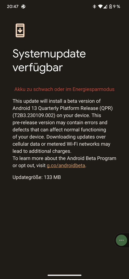 Hallo Magic_13, schau mal hier: Neues (QPR) Update gerade eingetroffen ( T2B3.230109.002 ). Dort wird jeder fündig!