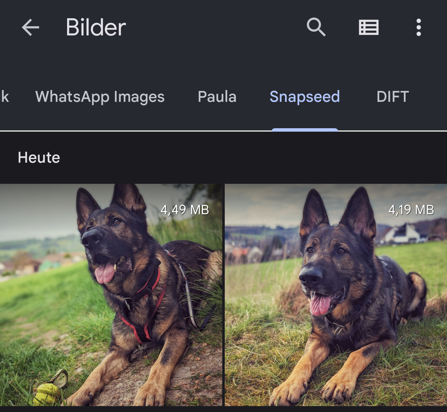 Zumindest in der Galerie, wenn ich über "Files" in die Bilder Kategorie gehe, gibt es "Snapseed" und die Bilder sind auch zu sehen. Auch in F-stop wird mir der Ordner angezeigt. Halt eben nur nicht in der Foto Galerie von Google.