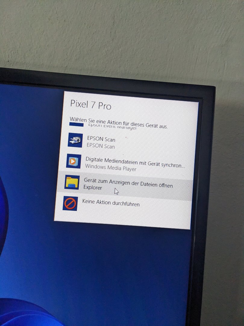 Wenn du das Gerät im Modus Datenübertragung an den PC anschließt hörst du dann von Windows das Geräusch, dass ein neues Gerät angeschlossen wurde?