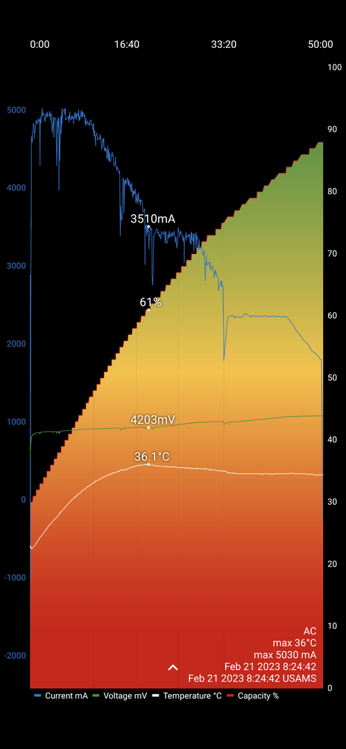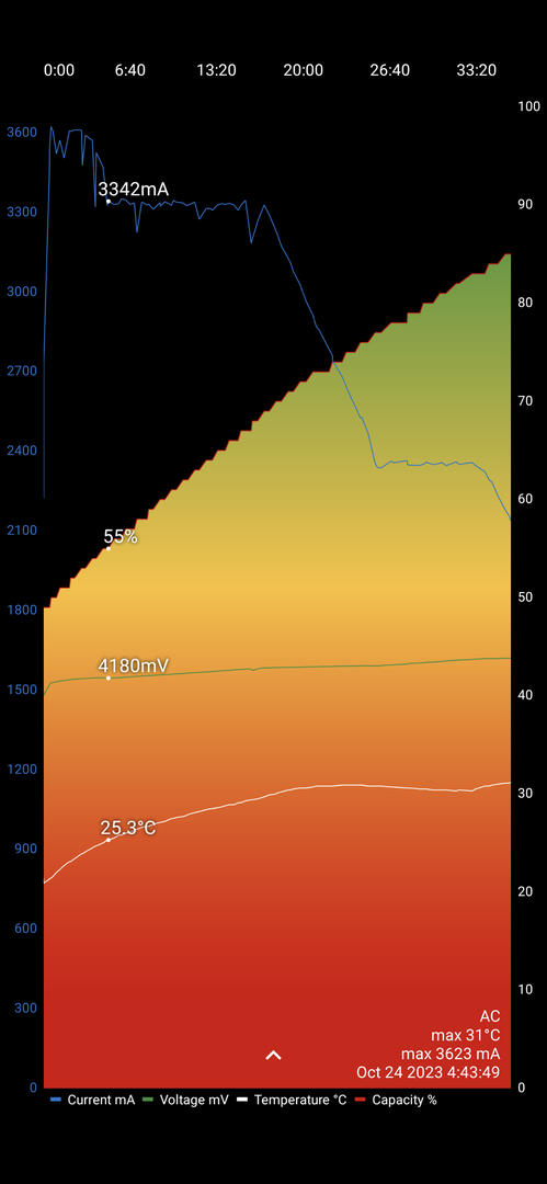 Eigentlich müsste das Ding bei dem Akkustand doch mit 25 Watt laden - oder irre ich mich und das Ladegerät kann das nicht.