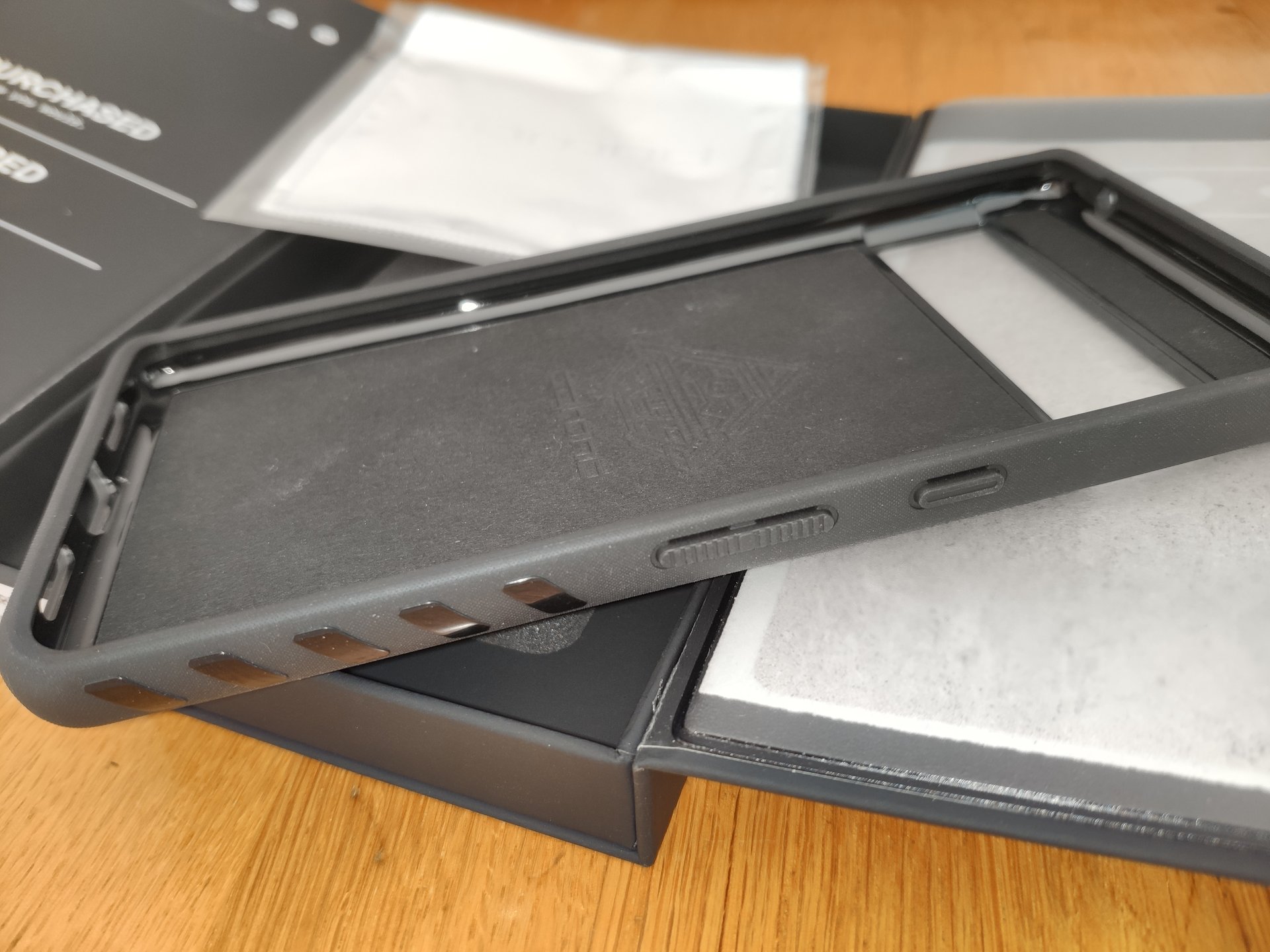 Ich wäre dir sehr dankbar für ein Foto, das die seitlich Abdeckung zum Display zeigt. Gibt es eine ausreichende Überhöhung am Displaykopf - und fuß? Leider sind die Bilder auf Ali nicht aussagekräftig.schattenparka schrieb:Habe jetzt seit 5 Tagen auch die in Post #545 beschriebene Aramid-Hülle von Ali.