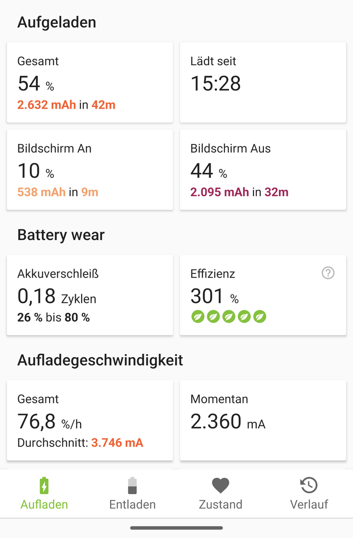 Von leer bis 50% lädt es in ca 30 min und bis ganz voll hab ich beim 6P ca 1std 50 gebraucht die letzten 10 % ziehen sich dann..