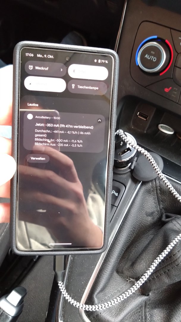 Das gleiche Problem habe ich im Auto. Wenn ich es anstecke entlädt der Akku weiterhin und das Ladegerät wird nicht erkannt. Siehe Foto.
