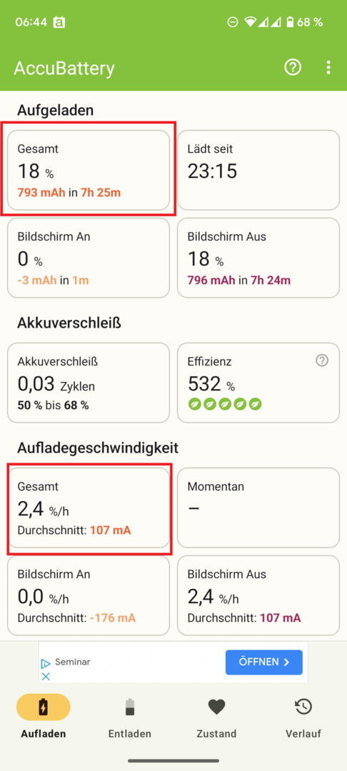 2. Über Nacht lädt das Handy manchmal (?!) nur wenige Prozent. Dieses intelligente Laden ist aktiv.