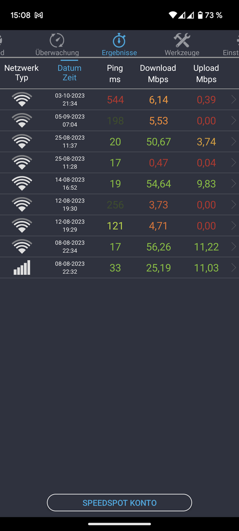 Es kommt immer mal wieder vor, dass ich zu Hause im WLAN sehr lange Ladezeiten beobachte. Ich habe mir dann mal eine App installiert, mit der ich in diesen Momenten mal Tests durchgeführt habe. Das Bild spricht für sich denke ich.