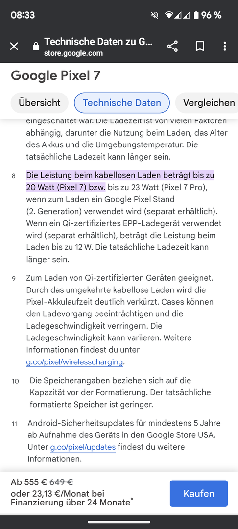 Also, zum Handy. Es ist ein Google Pixel 7 (128GB) Version.