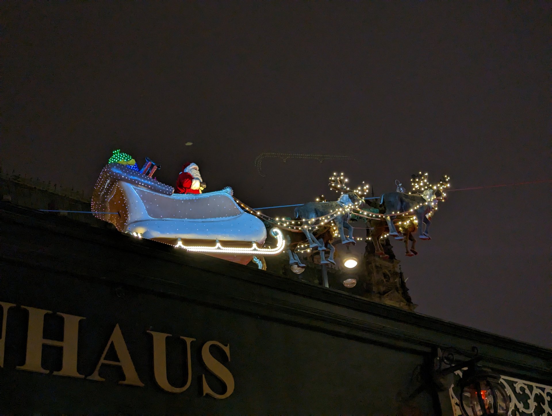 Beim Bild mit dem Weihnachtsmann ist es noch unauffällig, aber die Schlittenkufe spiegelt sich über den Rentieren. Beim Schloss ist sehr deutlich zu sehen, dass zwei fliegende W's neben dem Turm sind.