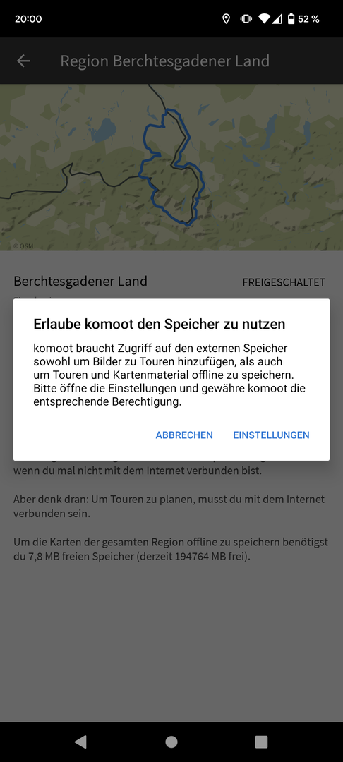 Habt Ihr da auch das Problem, dass keine Offlinekarten geladen werden können, weil die von Komoot angeforderte Berechtigung nicht gegeben werden kann?