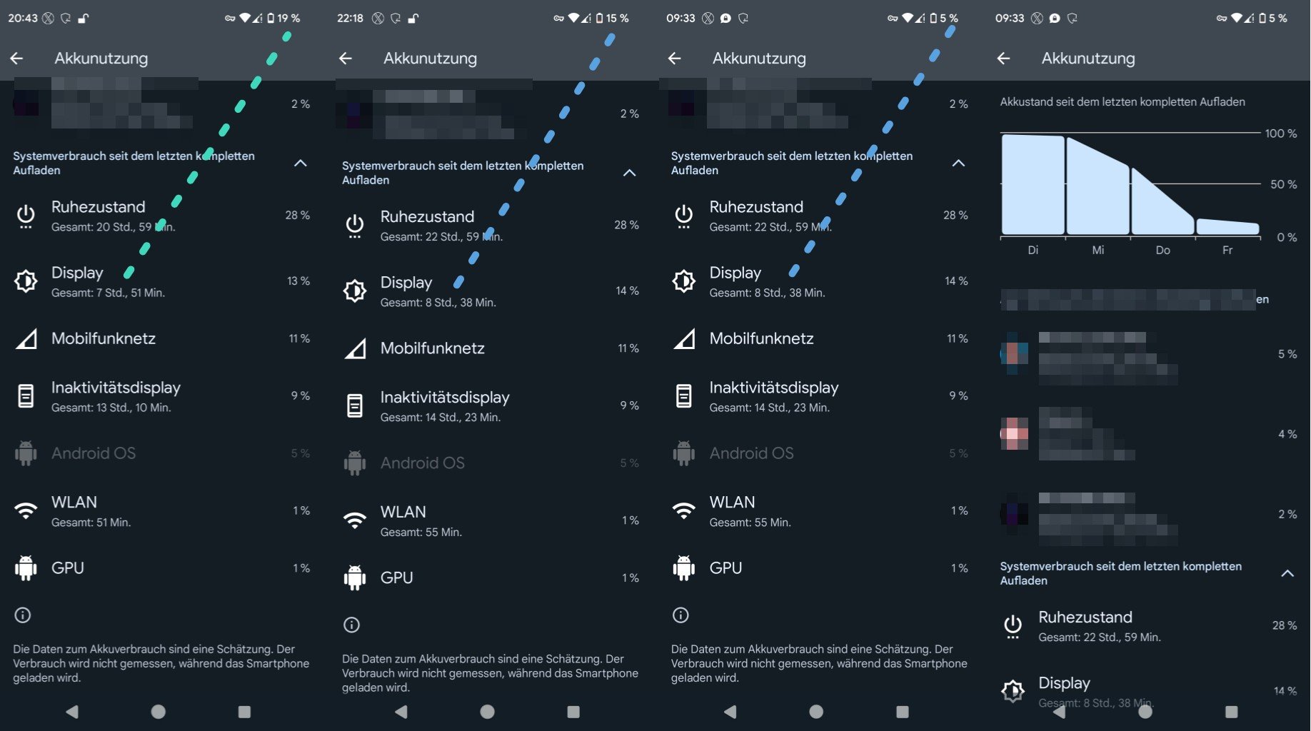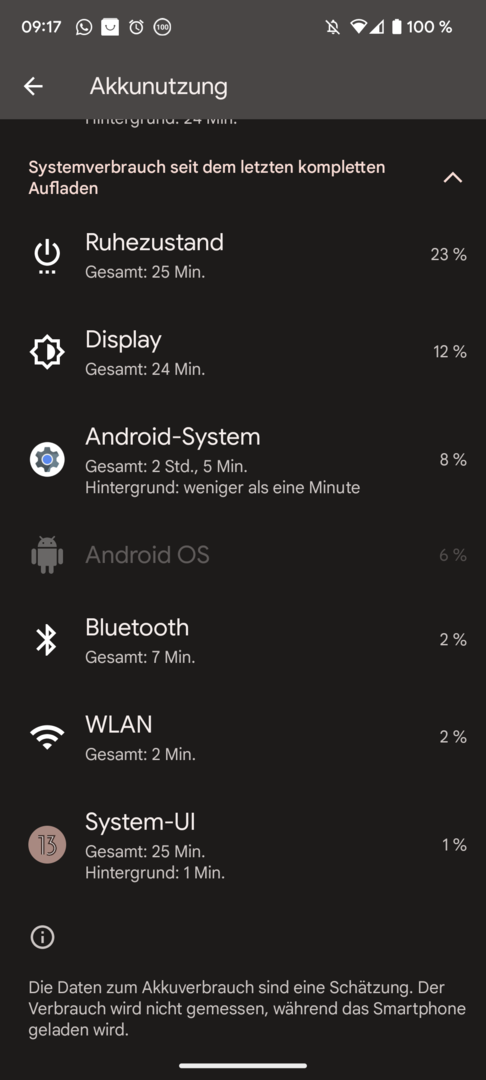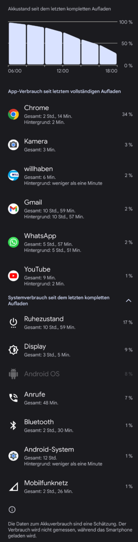 Heute wird es glaube ich ähnlich. Um 5 Uhr heute morgen 100 Prozent. Jetzt nach knapp 30 Minuten Nutzung ist es extrem warm und bin bei 86 Prozent. Man kann förmlich zu sehen wie die Prozente fallen. Keine Ahnung ob nach dem Update jetzt wieder die Algorithmen von Google durchlaufen. Aber komisch ist es auf jeden Fall, da ich bis gestern mehr als zufrieden war und eine richtig gute Akkulaufzeit hatte.