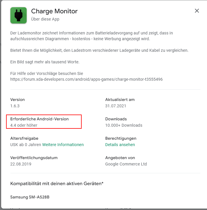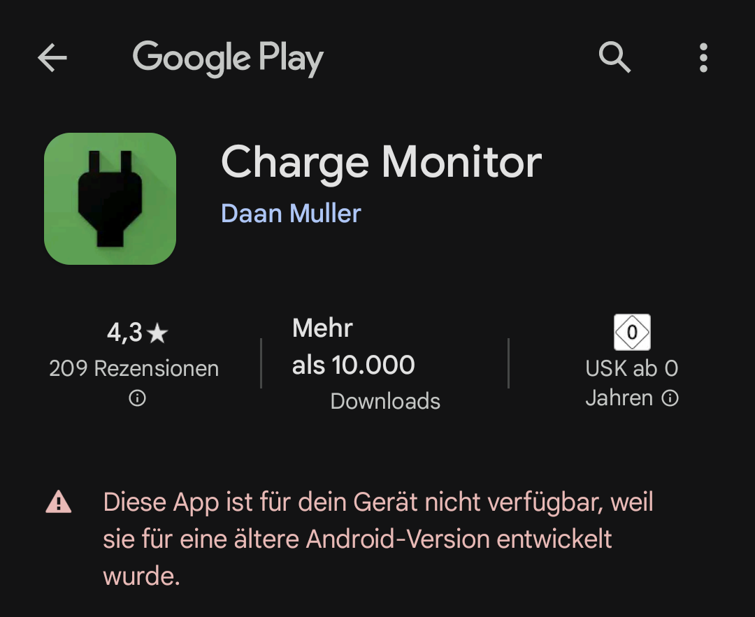 bzw. über Playstore - / Google Suche "Charge Monitor" funktioniert nicht?