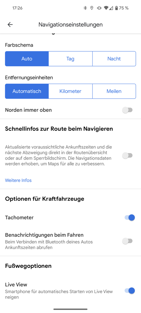 Was genau ist bei dir unter Navigationseinstellungen eingestellt, kannst mal einen Screenshot bitte machen?TNF Apex schrieb:@UncleBarisch Ich bin neulich mit Google und AA gefahren, da wurde mir rechts unten die Geschwindigkeit angezeigt. Das kann man in Maps in den Navigationseinstellungen einschalten. Trotzdem ist Vorsicht geboten, denn nicht immer sind die Daten da aktuell.