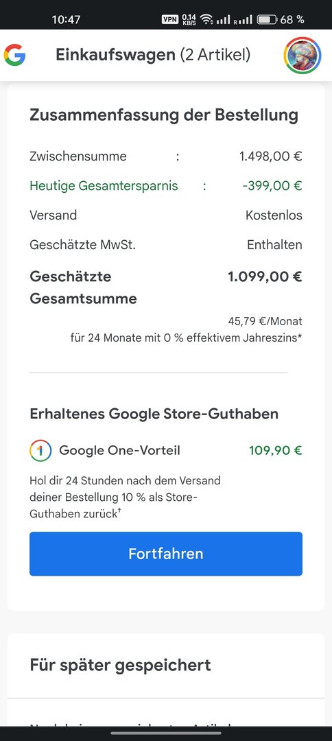 Nee, ich hab die WLAN Uhr genommen. Wundert mich echt. Wollte mir vllt noch die Buds Pro mit dem Guthaben kaufen aber erstmal warten, ob es da nochmal ne Aktion gibt.GMoN schrieb:Bei mir wurde das Guthaben korrekt berechnet. Habt ihr vielleicht die LTE Uhr dazu gekommen?