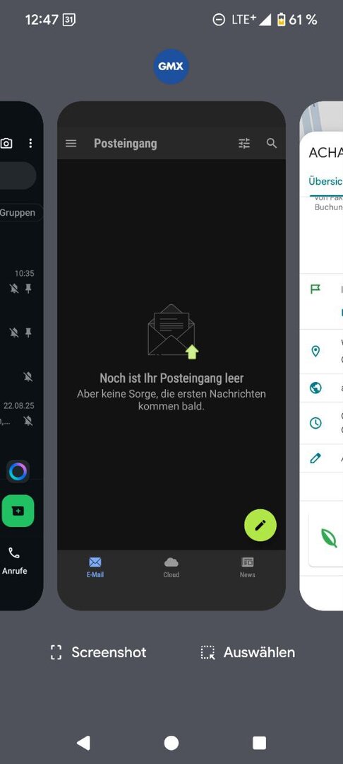 oder App-Übersicht (Recents): Öffne die App-Übersicht (Wischen von unten nach oben und halten), dann erscheint unten die Option „Screenshot“ für die aktuell angezeigte App.
