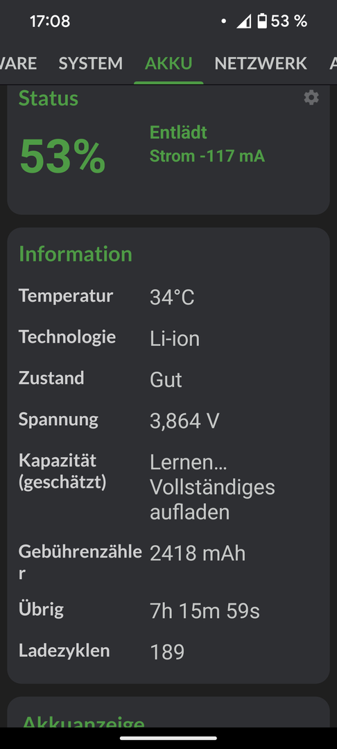 wo war denn dieser Tab mit den ladezyklen etc beim 8er Pixel? Gesundheitstab, nicht normal unter Akku sondern...?