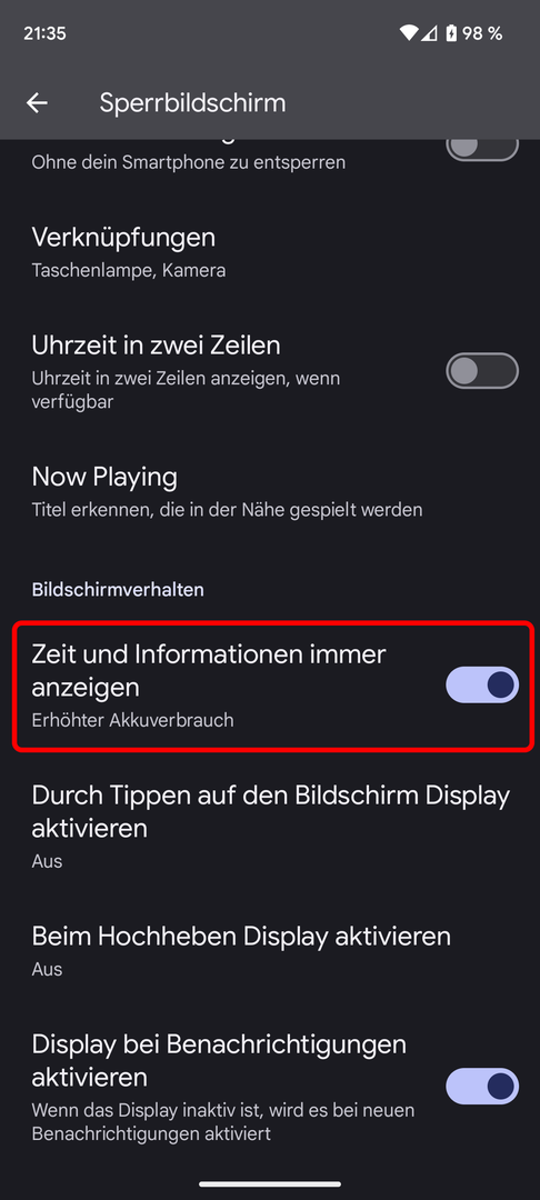 4. das Allways On Display ist wirklich nicht über Nacht abschaltbar???