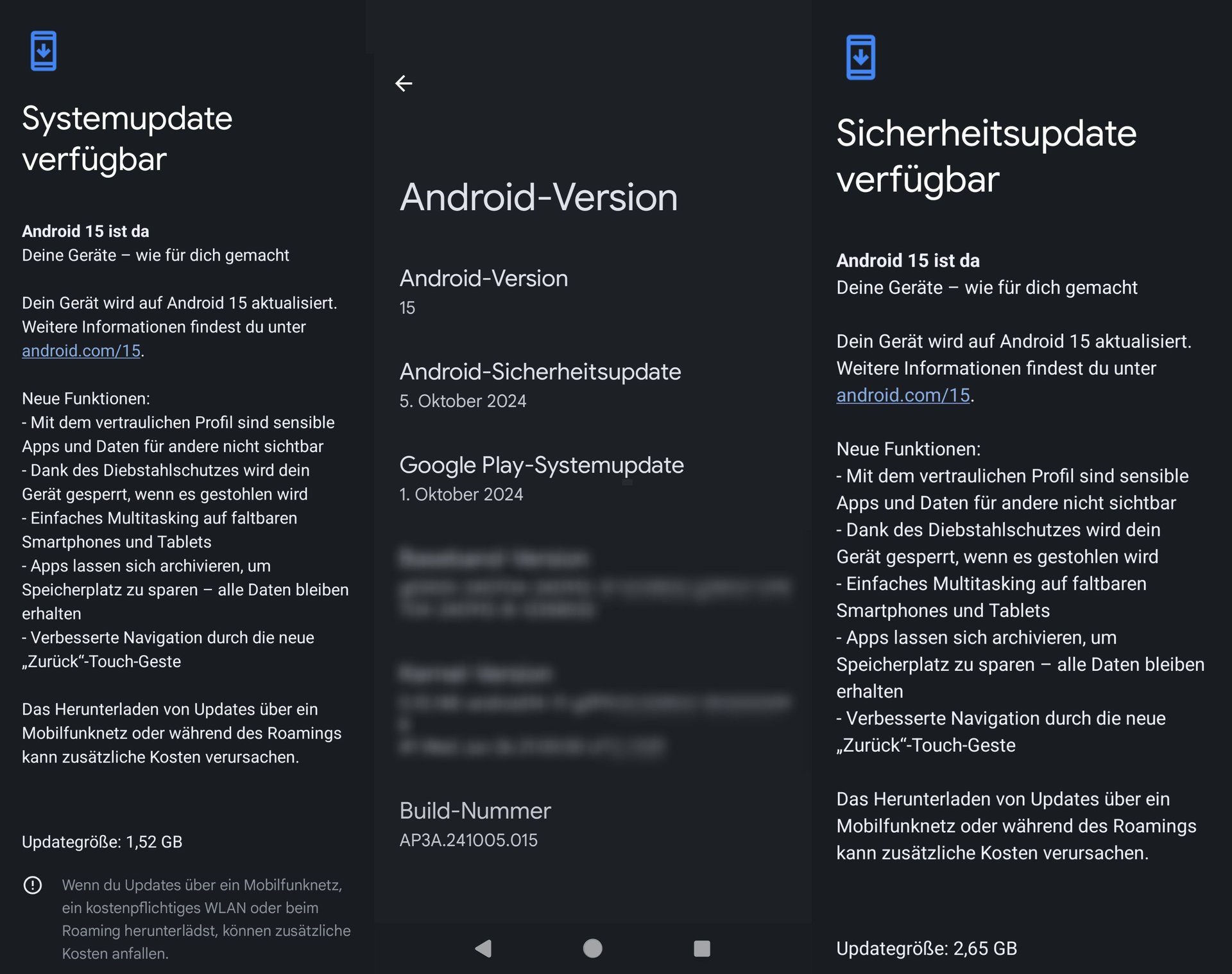 We have started to roll out the monthly software update for November 2024. All supported Pixel devices running Android 15 will receive these software updates starting today, and the rollout will continue over the next week in phases, depending on carrier and device. You will receive a notification once the system update is available for your device. We encourage you to check your Android version and update to receive the latest software.