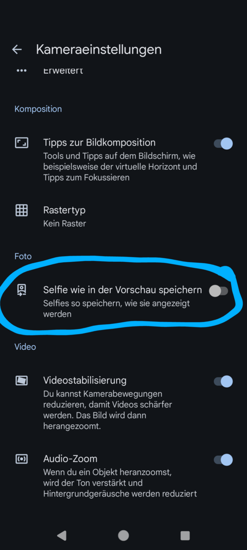 Die Frontkamera fotografiert immer verkehrt herum, kann man das nicht ändern?