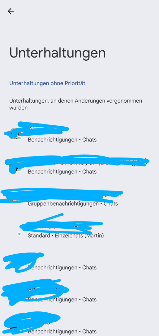 Bekommt man eine Nachricht und wischt die Benachrichtigung weg, kommen anschließend Benachrichtigungen des Kontakts nur lautlos an und werden auch in den Benachrichtigungen "Stumme Benachrichtigungen" genannt. Rückgängig kann man es dann nur machen, indem man über das Einstellungsmenü in die Unterhaltungen geht, auf den Kontakt klickt und ganz unten auf "Keine Unterhaltung" drückt - also quasi die Unterhaltung zurücksetzt.