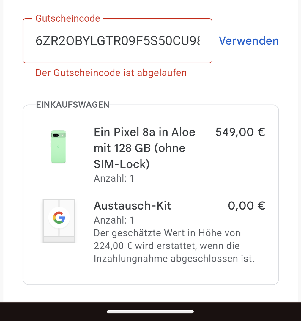 Zwischen dem 07. Mai 2024 und dem 03. Juni 2024 gibt es beim Kauf eines Pixel 8a bei teilnehmenden Einzelhändlern einen zusätzlichen Trade-In-Betrag von 150 €, wenn ihr ein altes Smartphone in Zahlung gebt. Das Pixel 8a wird ab dem 14. Mai 2024 im Google Store und bei anderen Händlern erhältlich sein. Alles zur Trade-In-Aktion findet sich hier: Tipps & Empfehlungen zum Trade-In Bonus beim Kauf des Pixel 8a (Google Pixel 8a Forum).
