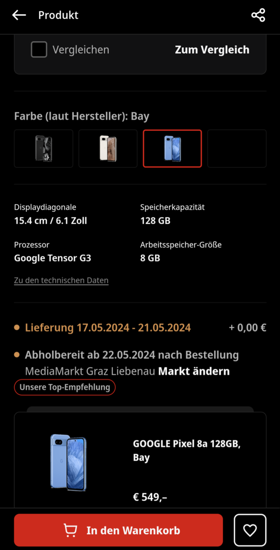 das neue Google Pixel 8a ist offiziell: Es kostet ab 549 EUR direkt bei Google: Google Pixel 8a.