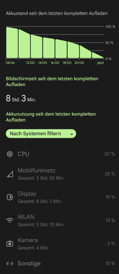 Also bei mir hält jedes Gerät 2 Tage lang.