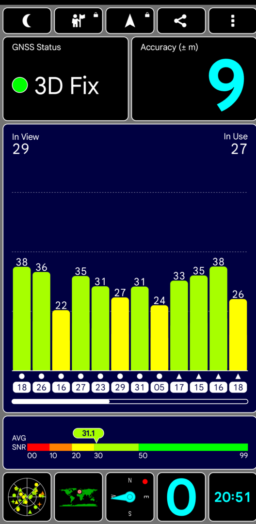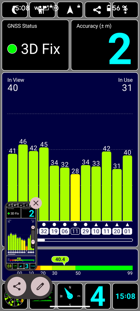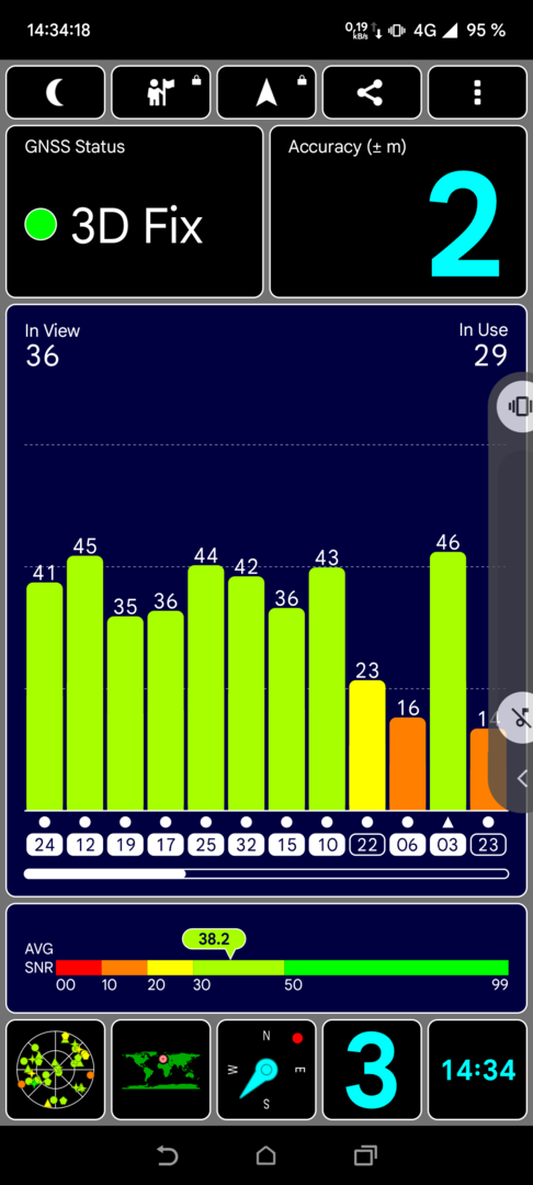 Ich nutze ab und an die App "GPS Test", um mir den aktuellen Sat-Fix anzuschauen. Dabei ist mir aufgefallen, dass das P8a zwar ausreichend Satelliten findet und auch recht viele davon für die Standortbestimmung nutzt, aber die Standortgenauigkeit trotzdem sehr schlecht ist.