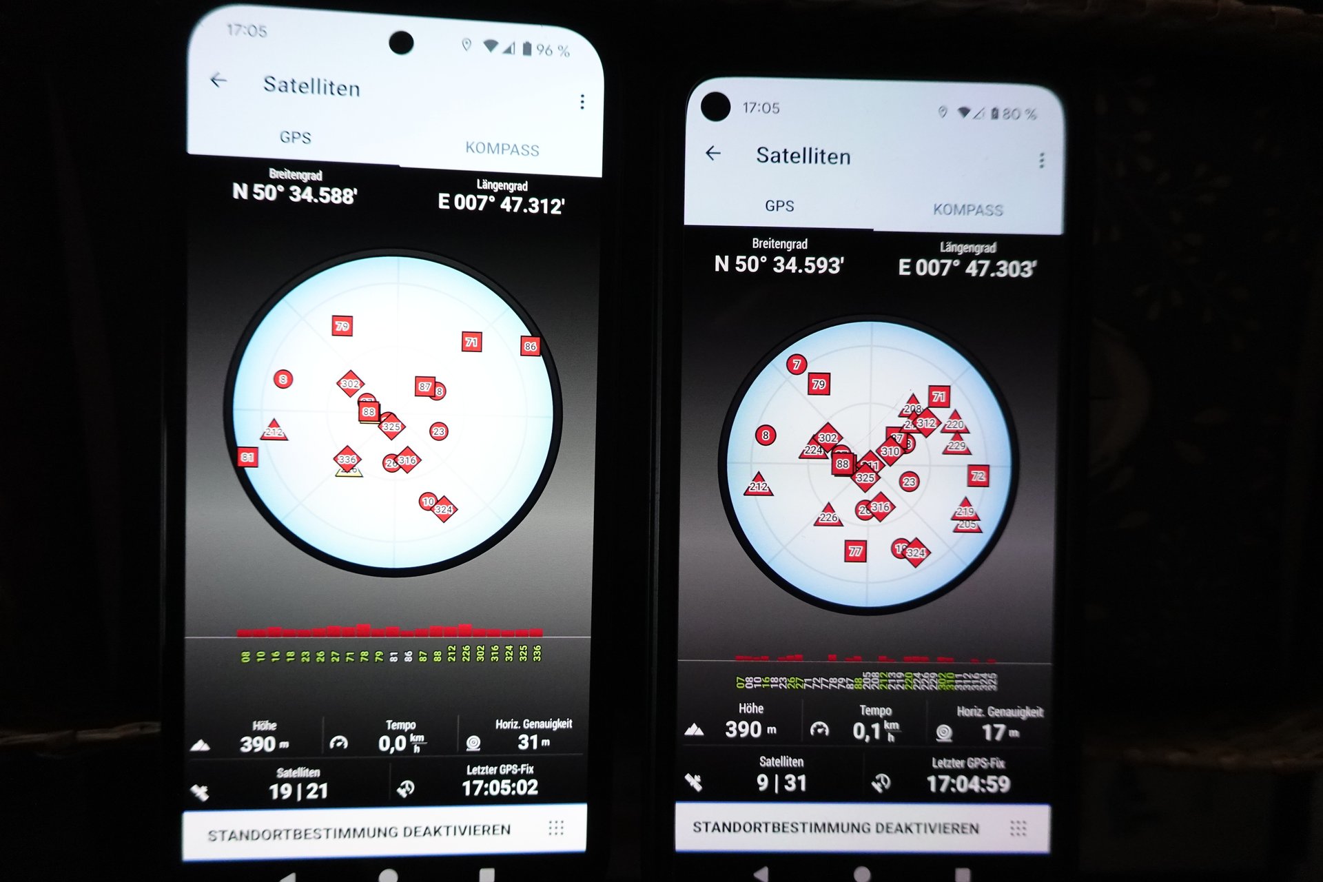 - Der SatFix geht bei beiden ähnlich schnell (ca. 2-5 Sek.).