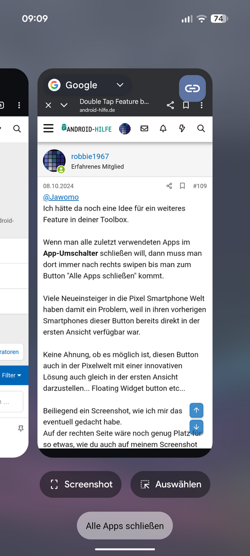 Jetzt beim Pixel geht das nicht. Klicke ich drauf, ist da irgendwas mit Screenshot und so.