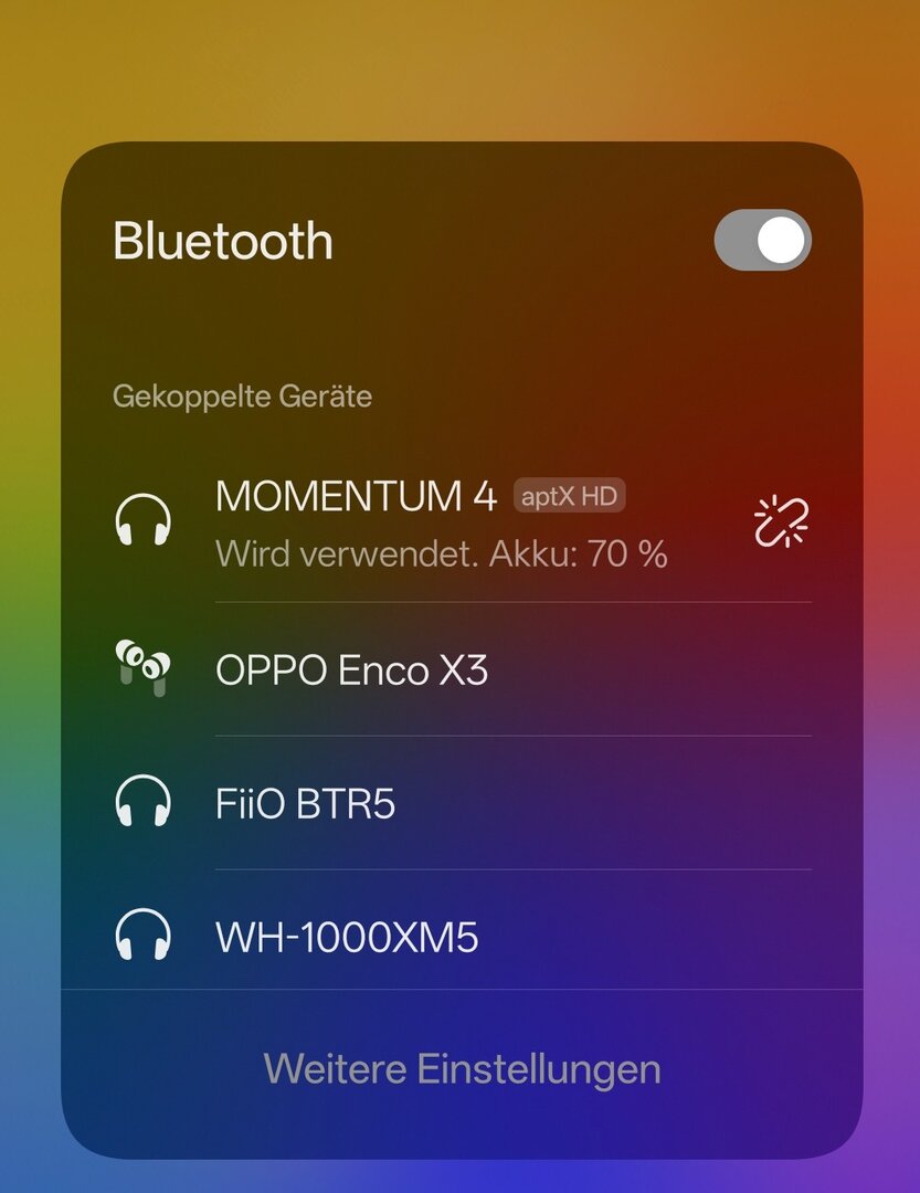 .Mir ist gerade etwas beim Musik hören aufgefallen. Und zwar, habe ich meine Momentum 4 von Sennheiser gleichzeitig mit dem Pixel 9 Pro XL und dem Oppo find X8 Pro gekoppelt. Auf dem Oppo, wird mir auch aptX HD angezeigt. Auf dem Pixel einfach gar nichts. Habe jetzt die selben Tracks auf Tidal verglichen mit beiden Smartphones (EQ natürlich auf beiden deaktiviert) und finde, dass das Oppo die Musik ein bisschen Satter und klarer wiedergibt. Ist natürlich "Meckern" auf hohem Niveau und man merkt es nur, wenn man den einen und selben Titel hört. Dennoch stellt sich mir die Frage.... Unterstützt das Pixel 9 Pro XL den Audio Codec überhaupt? LDAC bei Sony Kopfhörern, werden definitiv auf dem Pixel angezeigt.
