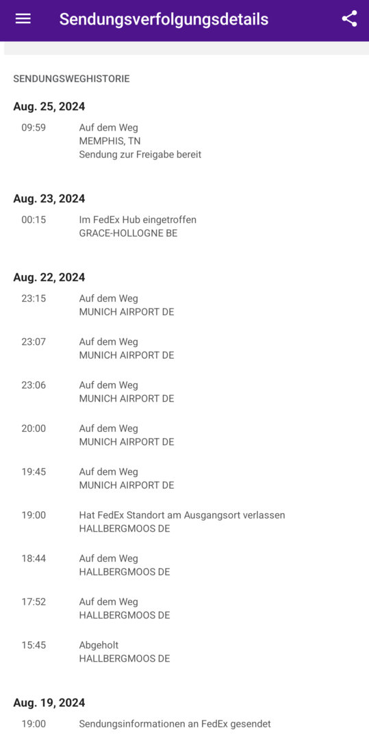 Hab am Donnerstag das Paket durch FedEx abholen lassen und wollte heute mal den Status prüfen.