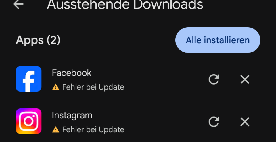 Hallo! Ich habe heute mein Google Pixel 9 Pro eingerichtet. Alle Updates vom System sind installiert, leider erhalte ich aber immer wieder bei App Updates Fehler. Habt ihr eine Idee womit dies zusammen hängt? Bei den anderen Apps wo der Fehler erst auch auftrat ging es nach einem Neustart des Smartphones. Hier komme ich damit nicht weiter: