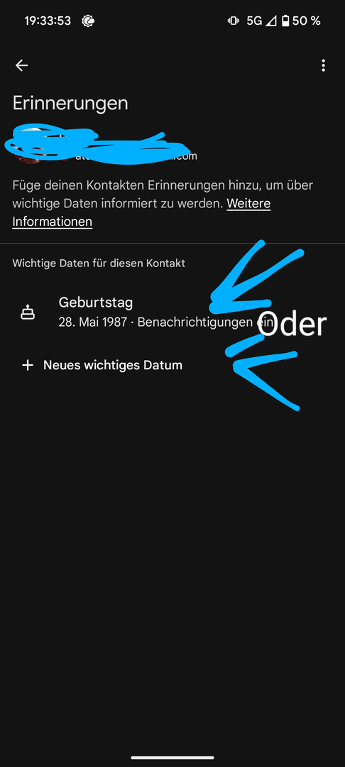 Hi. Ich nutze den Google Kalender zum Verwalten meiner ganzen Termine, Geburtstagserinnerungen usw. Jetzt ist mir aufgefallen, dass kein einziger meiner Kontakte im Kalender mit seinem Geburtstag o.ä. auftaucht,. Obwohl der Haken aktiviert, der Kontakt auf dem Konto, nicht der SIM gespeichert wurde. Hat da jmd ne Lösung oder vlt auch das gleiche Problme?