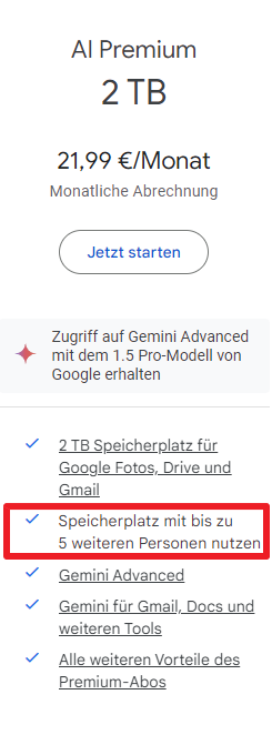 Also fällt dieser "Bonus" als Bestandskunde von Google One 2TB weg ...