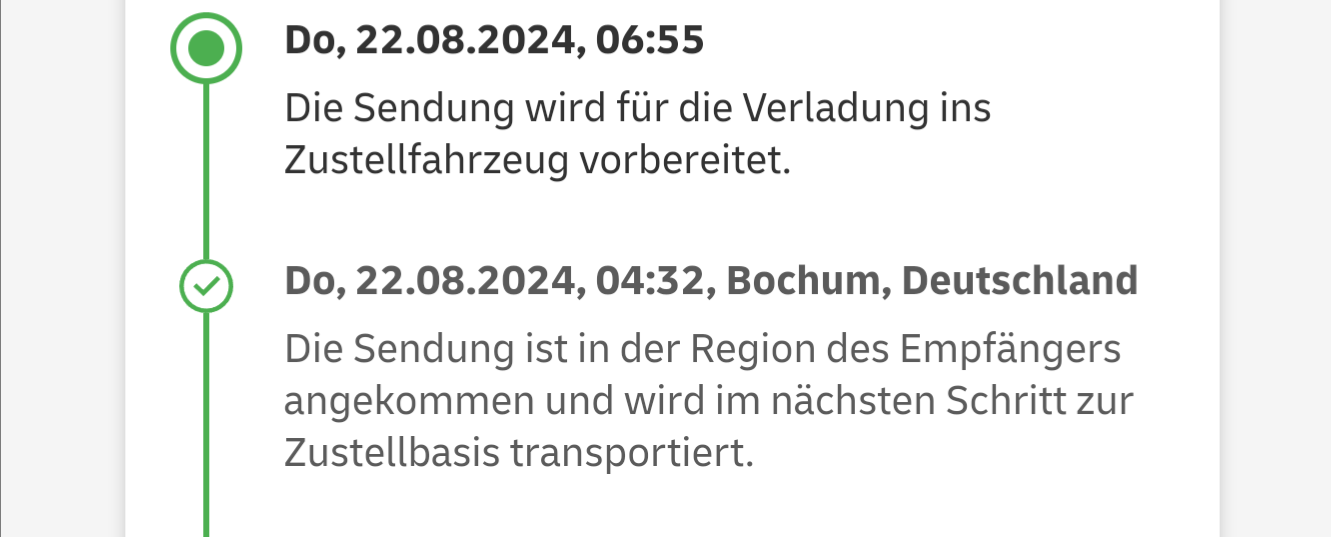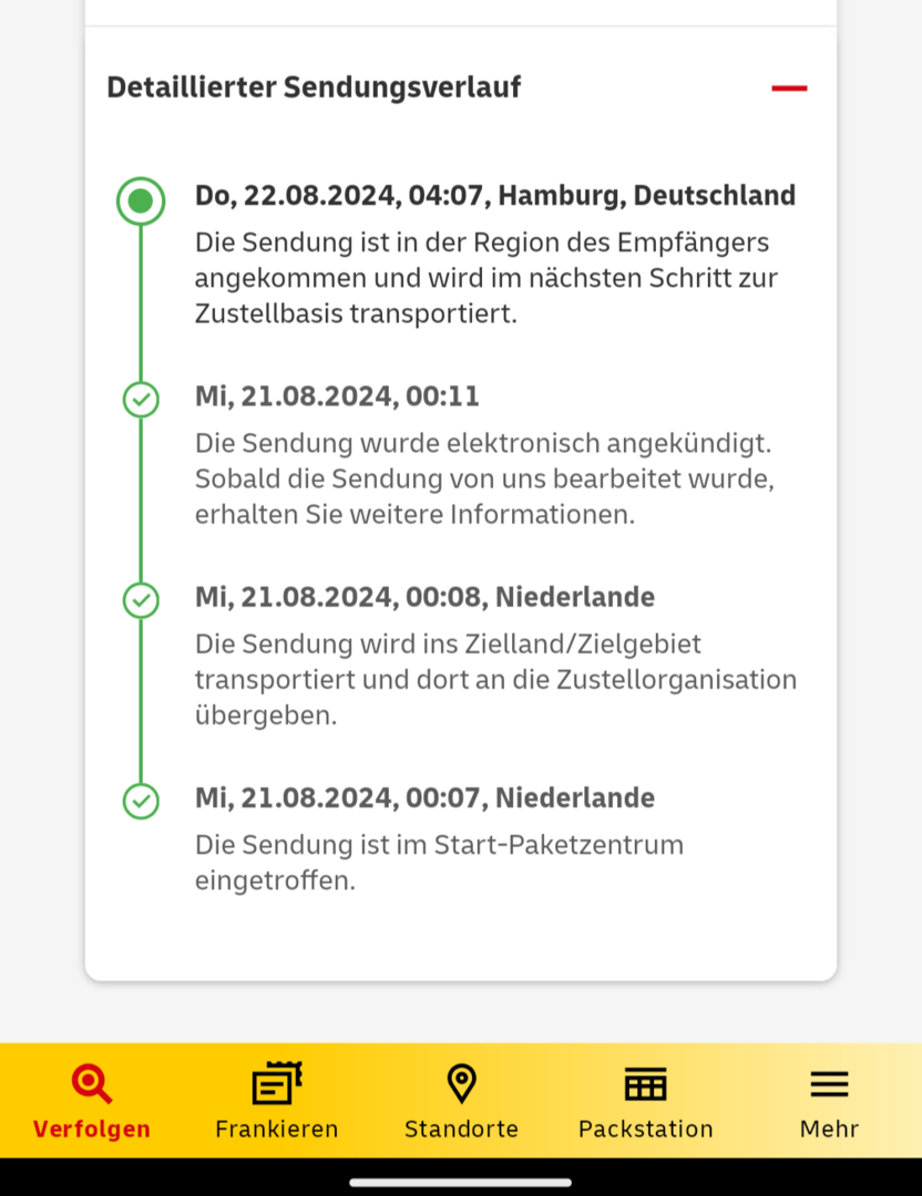 Meins ist auch in der Zielregion angekommen und wird wahrscheinlich heute oder morgen zugestellt. Let's see...
