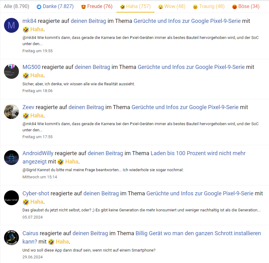 unter meinen Beitrag verteilt. Bei dir habe ich nur reagiert, weil es bei den anderen sich nicht lohnt, darauf zu reagieren.