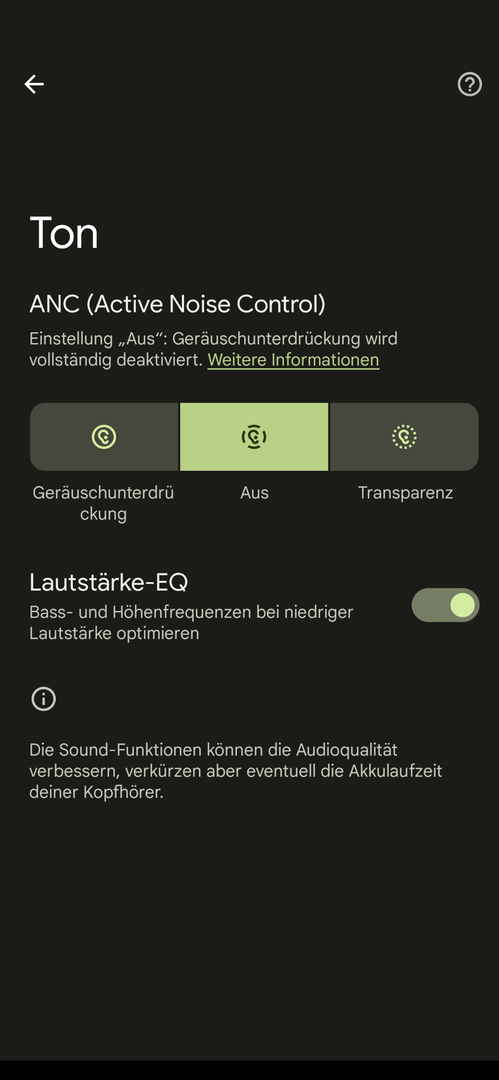 @Klartext Man kann ANC Aus oder Einschalten oder den Transparenz Modus Aus oder Einschalten einstellen. Das geht unter "Berührungen halten und anpassen" ganz unten. Da kann man 2 von 3 Punkten wählen.