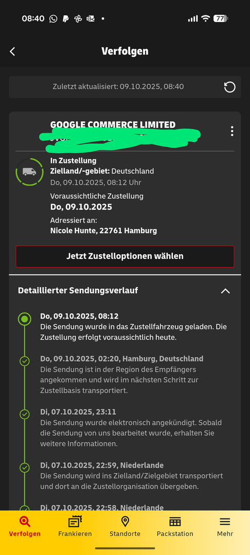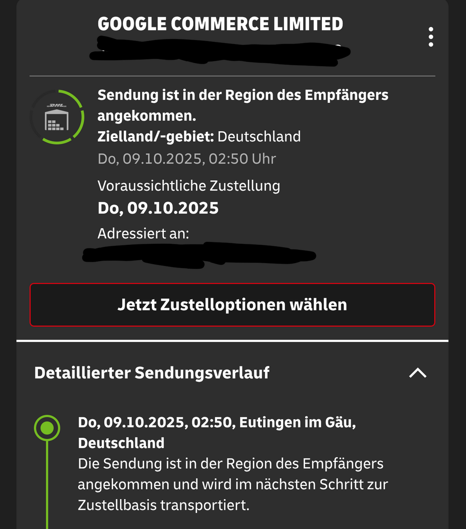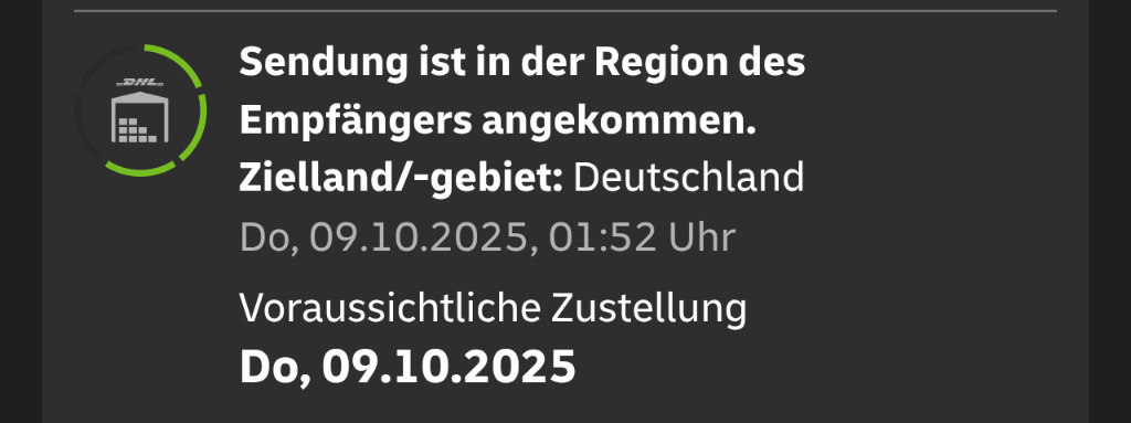 Mal sehen. Die Dame von DHL Express meinte, wenn sie heute noch übergeben wird, sollte sie morgen bei mir in AT zugestellt werden.