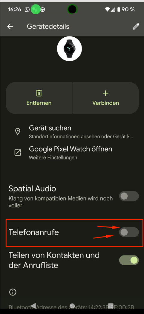 Egal was ich auf dem Handy unter Bluetooth eingetragen habe, es landet immer auf dem Handy, was für mich besonders blöd ist. Meine Watch ist mit meinen Hörgeräten gekoppelt, damit ich im Zweifelsfalle unterwegs telefonieren kann.