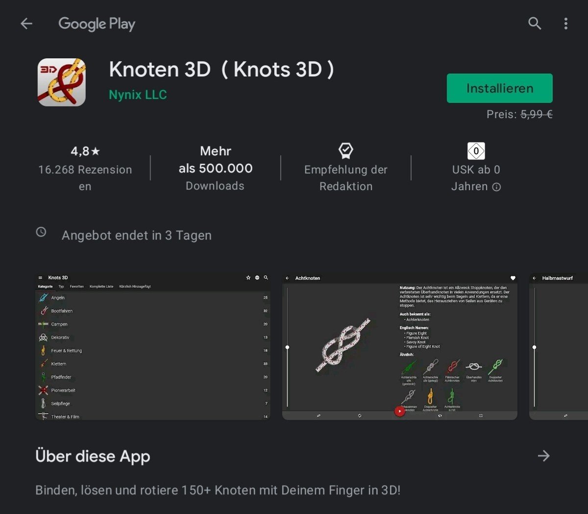 ist aktuell wieder kostenlos in der Version 8.2.0 (keine Tracker)orgshooter schrieb:Knots 3D - Apps on Google Play