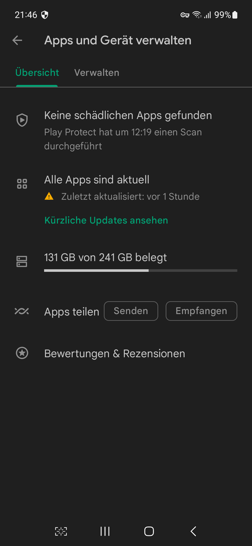 Ich habe seit 2 oder 3 Tagen auf meinem Samsung Galaxy S21 FE im Menü Apps und Geräte verwalten ein gelbes Dreieck mit Ausrufezeichen, welches nicht verschwindet. Auf anderen Samsung Galaxys mit ebenfalls A13 habe ich das Symbl nicht. Ich finde weder eine Erklärung für das Symbol und daher auch keine Lösung, ob und was für ein mögliches Problem damit signalisiert wird. Kennt es jemand?