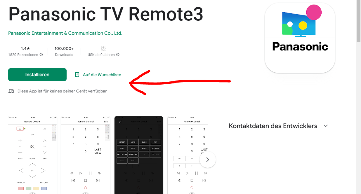 Ich suche auf meinem Smartphone oder Tablet im Play Store die Panasonic TV Remote 3 App.