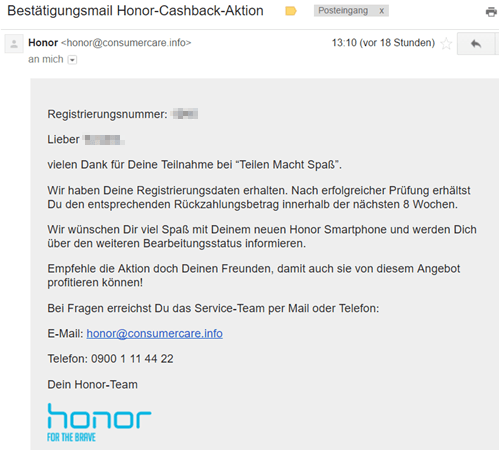 wieviel Tage lagen zw hochladen deiner Daten zu honor und der Bestätigung?lordpower schrieb:Ui gerade Bestätigung bekommen dass ich die 50 EUR bald bekomme