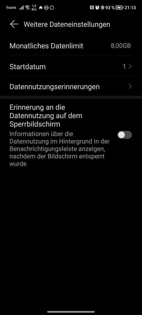 Ich habe Eingestellt das 8 GB immer am 1 des Monats verfügbar sind.