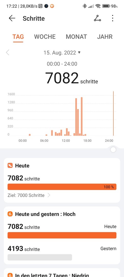 Bei Honor/Huawei Geräten sind die Schritte in der App immer höher, weil die Schritte vom Phone mitgezählt werden.