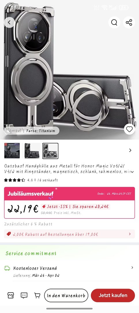 Hatte ich ja damals schon geschrieben, dass das Original Case mit dem Hinge Schutz Kratzer beim öffnen und schließen auf dem Frontdisplay hinterlassen hat und ich deshalb nicht mehr nutze. Wird bei dir ähnlich gewesen sein, nur eben auf der Hinge. Eventuell habe ich auch schon Kratzer auf der Hinge. Da ich aber das Reddish Brown Model habe, sieht man nichts, wegen dem goldenen Muster das die Hinge hat.Kris van Kiss schrieb:Ich für meinen Geschmack gehe da ein Stück weit mit mit @wohew. Ich hatte das Original Cover drauf und dann kurze Zeit das Original Book Cover. Beim Book Cover hat mich der Deckel auch genervt und beim Original habe ich direkt den Frontrahmen weggelassen da es nicht aussieht und man besagte Kompromisse in Kauf nehmen muss wie Staub, Klebereste. Außerdem hat mir das hintere Teil vom Case, der Hinge Schutz, das Frotdisplay (Folie) leichte Mikrokratzer verpasst, da es beim Öffnen immer leicht auf das Display rutschte. Letztendlich finde ich am besten das V3 Hüllenlos zu benutzen. Jedes Case macht das Gerät einfach dicker und damit mit das schönste am Gerät hinfällig und zwar wie unglaublich dünn es ist. Es wirkt von außen wie ein normales Barentelefon nur das man es auch noch auffalten kann und dann ein Minitablet hat. Ich liebe mein V3 nackt.