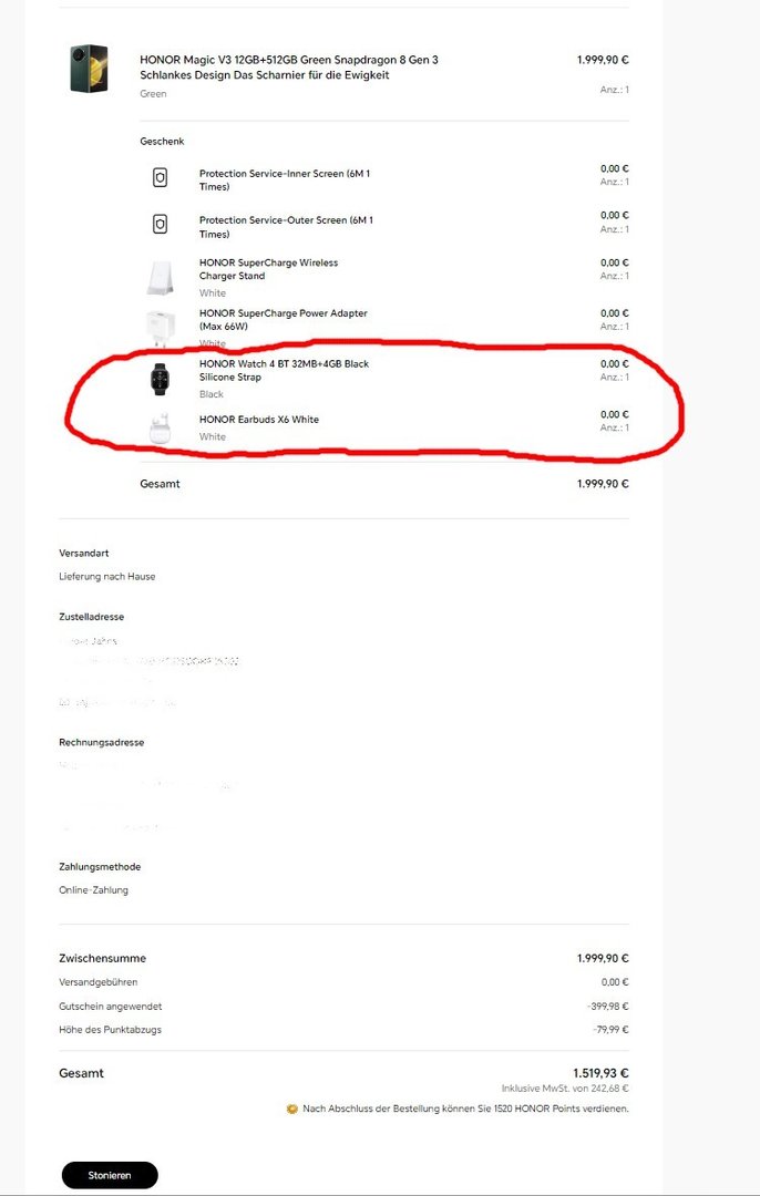 - 79,99 EUR (Honor App installieren und 2000 Punkte kassieren (NEUES Konto erforderlich))