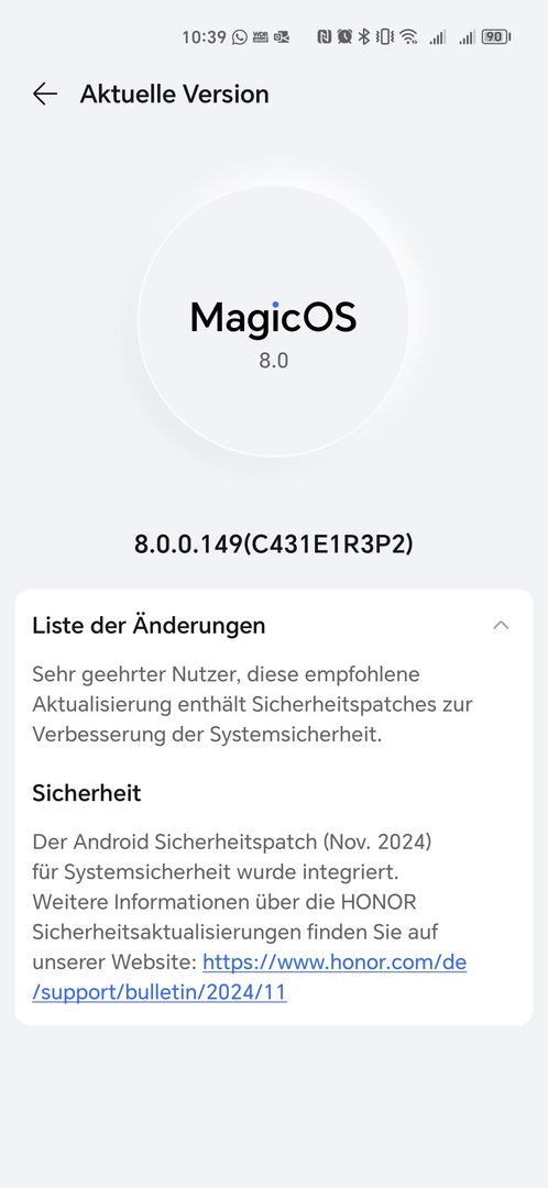 Neues Update 8.0.0.149 (C431E1R3P2) Nov.24 für das Honor Magic4 Pro