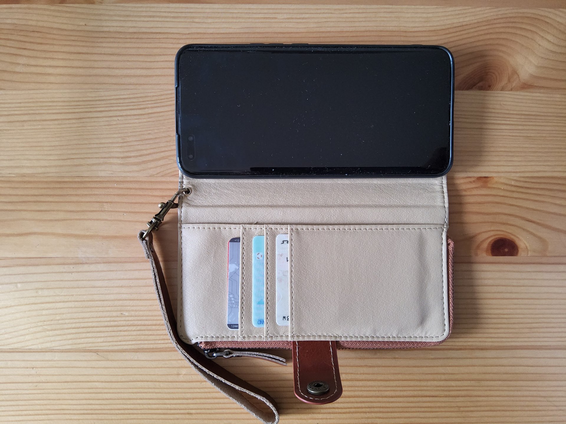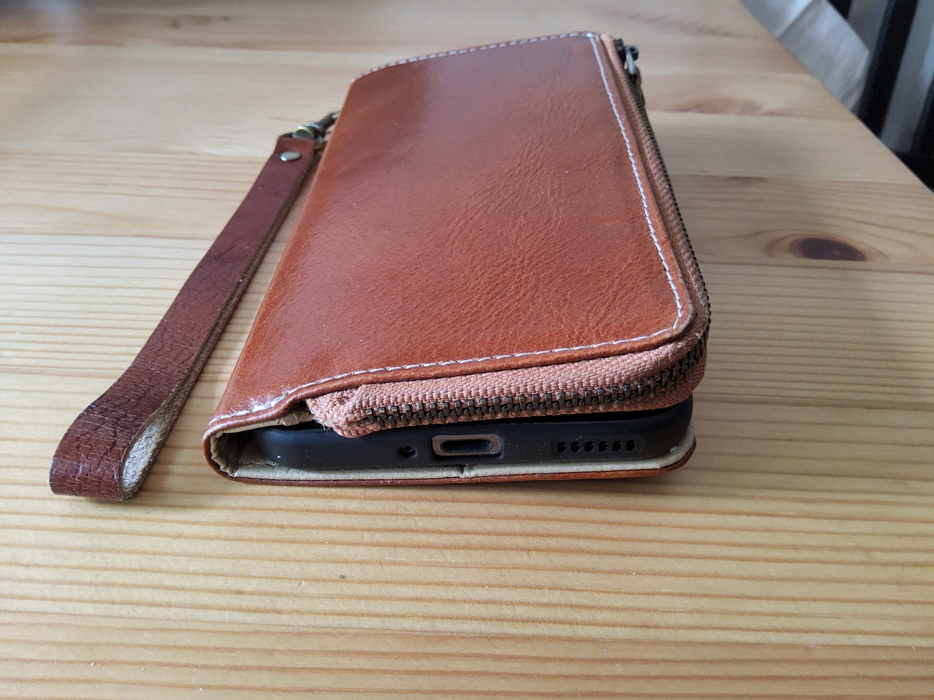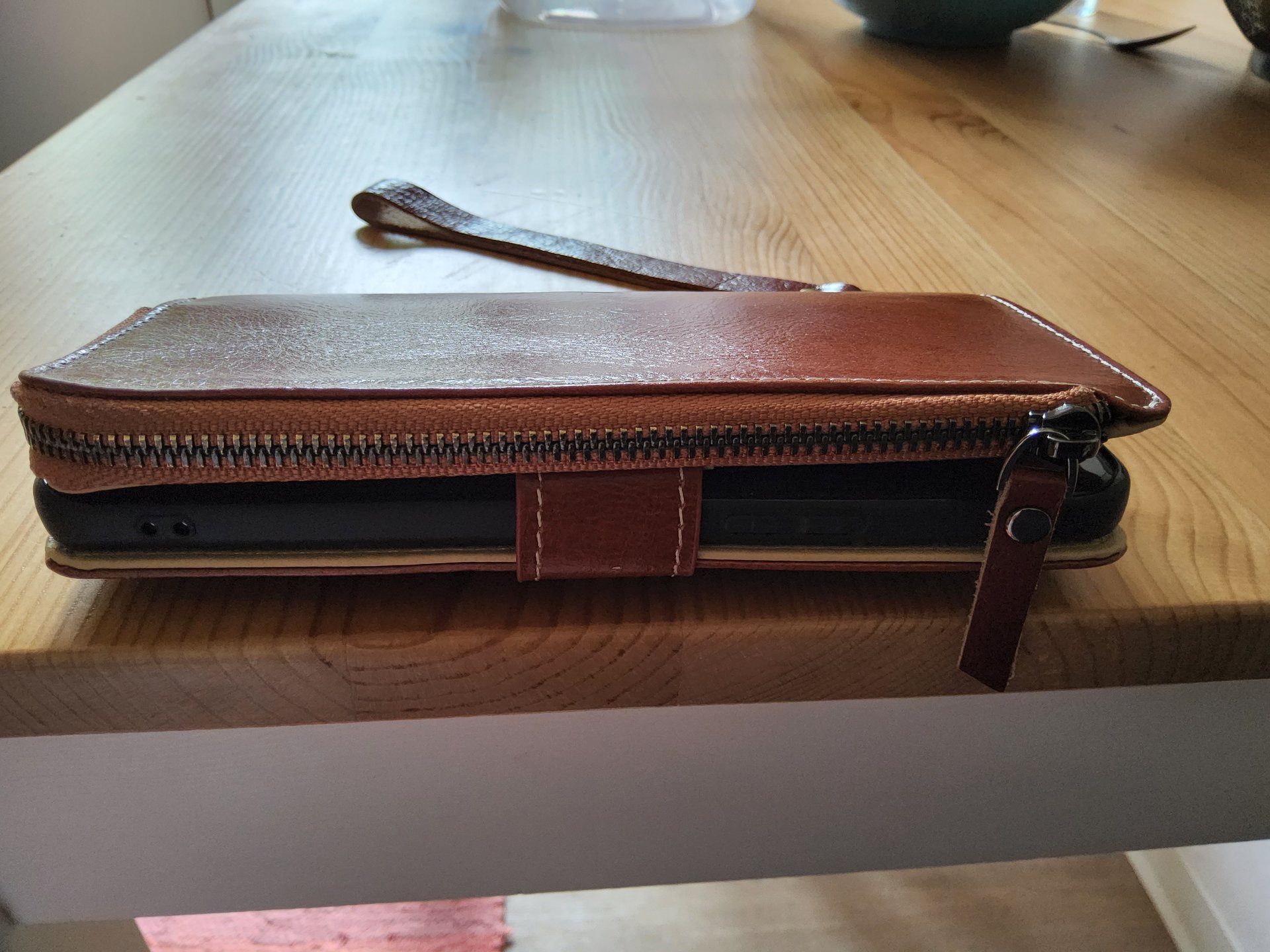 Und für die seltenen Hosentaschenmomente habe ich mir bei der Gelegenheit direkt im selben Shop ein Case mit Lederrücken bestellt, da mir das Dux Ducis-Case von Verarbeitung und Schutz zwar gefällt aber das Telefon für mich viel zu klobig macht.
